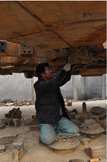 在地下1.4公里的掘進路程,讓盾構機從開始的煥然一新到現在渾身都是泥土和銹跡,充滿了“奮斗”的痕跡,如同經歷了一場大型戰役般,現在的盾構機最需要的是休養和調整。據負責人李強介紹,盡管配備專門的維修保養人員,但在盾構機掘進過程中,仍會出現正常的使用損耗,如刀盤的泡沫孔被淤泥堵塞等,只能等到盾構機完全拆卸后才能處理。現在他們的主要工作就是為盾構機去泥、除渣、除銹、刷油,維修損壞部件,進行例行保養。