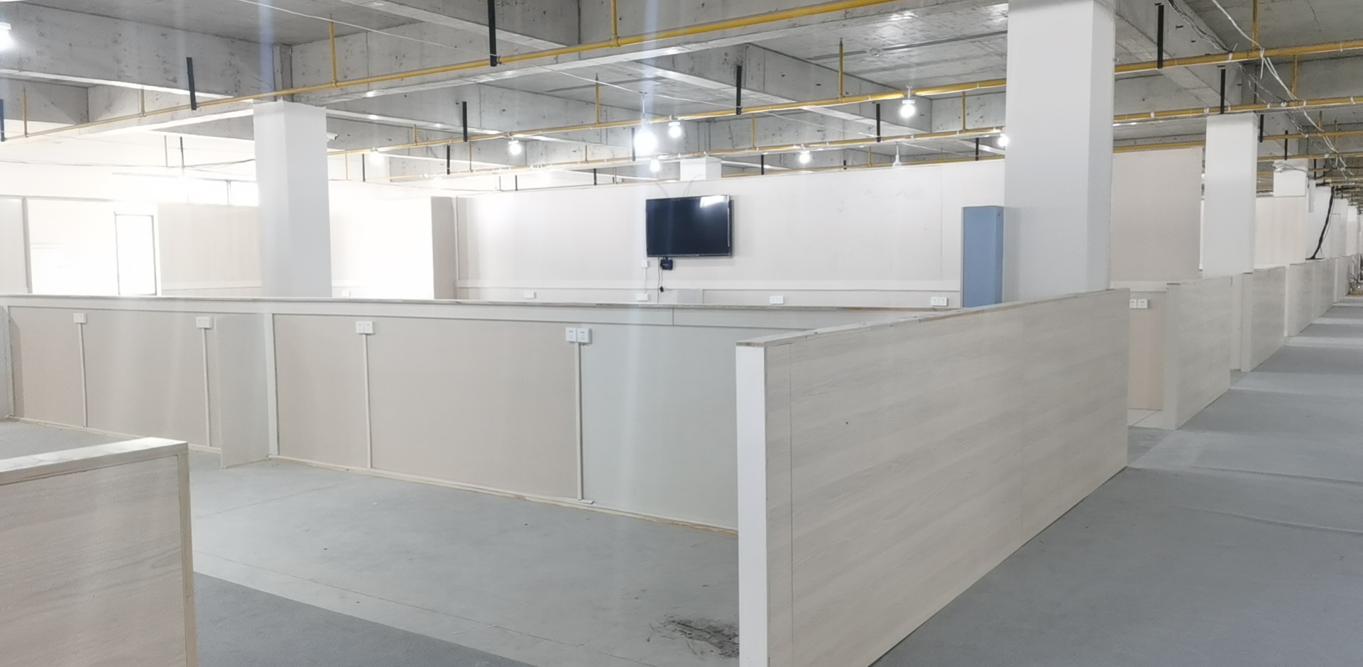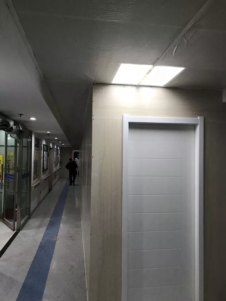 ? ? ? 為了順利完成任務(wù),2月16日清早,休息不足4小時的項目人員便趕忙開始進行第一階段的施工,并于17日凌晨完成4層樓共計280張隔板、28扇門的施工,為確保第二階段施工能盡早開始,完工的4層樓當(dāng)晚便與院方進行交接,經(jīng)驗收合格。2月17日,病人正式入住。