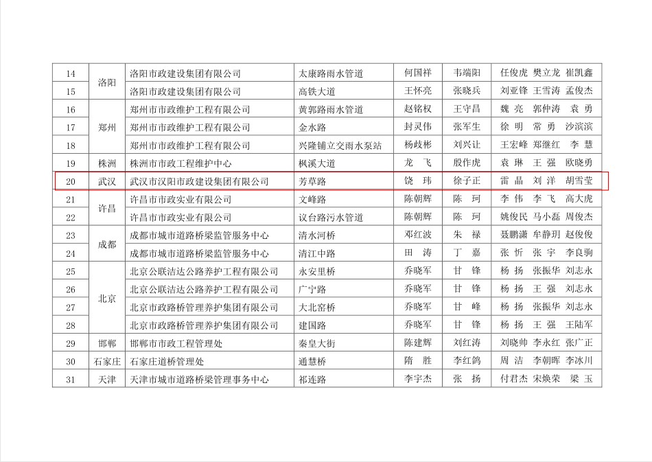 2017-2018 年度全國“城鎮(zhèn)市政養(yǎng)護(hù)示范設(shè)施”創(chuàng)建活動—— “扁鵲杯”獎獲獎名單(部分)