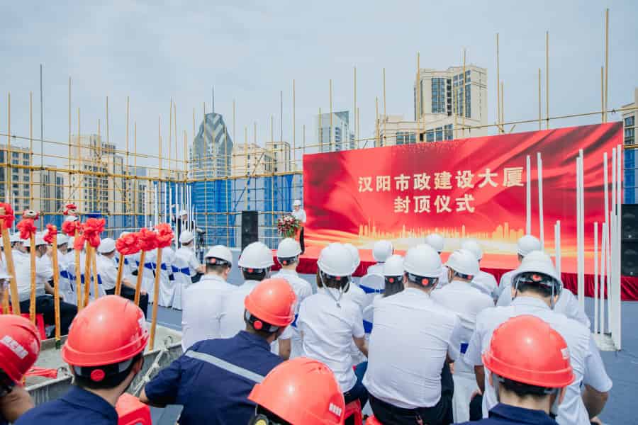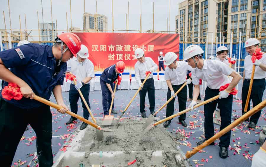? ? ? 2021年6月2日上午,漢陽市政建設大廈封頂儀式在項目現場隆重舉行。漢陽市政黨委書記、董事長嚴悌文,總經理虞志鵬,常務副總經理王智高,黨委副書記陳穎等集團領導班子及集團各部門負責人,分子公司主要領導以及項目一線建設者共計50余人參加了本次封頂儀式。