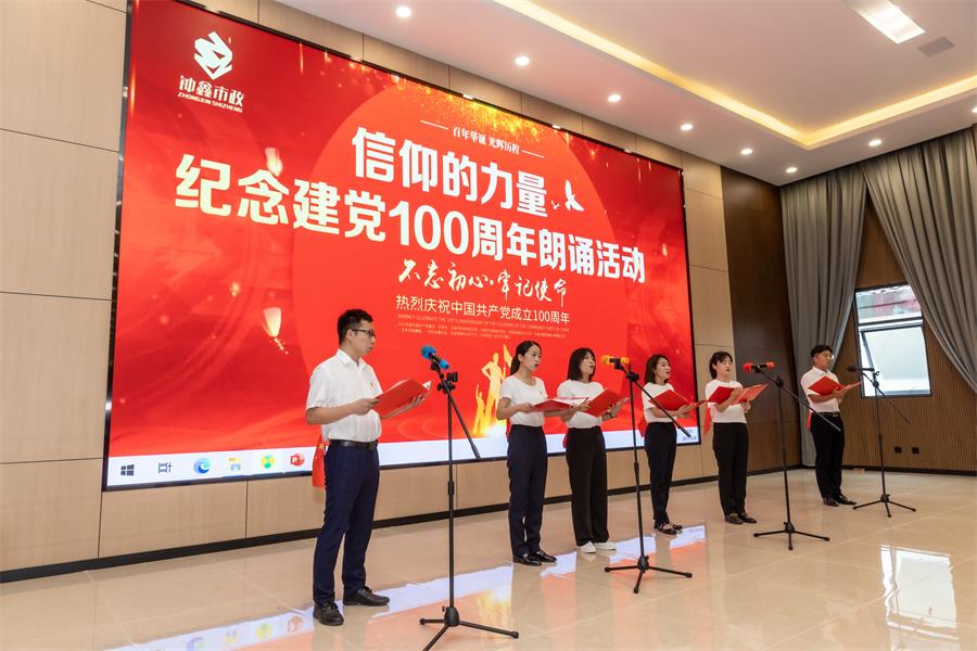 朗朗誦讀聲,道不盡百年波瀾壯闊;拳拳赤子心,創(chuàng)造著偉大光輝歷程。6月28日,高新三路項(xiàng)目部會(huì)議室內(nèi)紅色旗幟高高飄揚(yáng),在喜迎中國(guó)共產(chǎn)黨建黨100周年之際,漢陽市政鐘鑫公司舉辦“信仰的力量”紀(jì)念中國(guó)共產(chǎn)黨建黨一百周年朗誦活動(dòng),以深情誦讀顯風(fēng)采,以赤誠(chéng)紅心致黨心。機(jī)關(guān)黨支部副書記、辦公室副主任賈慧然,鐘鑫公司黨支部書記、董事長(zhǎng)陳俊俊,鐘鑫公司黨支部副書記、總經(jīng)理盧永紅,黨支部副書記李艷娥蒞臨比賽現(xiàn)場(chǎng)并擔(dān)任評(píng)委。來自部門及項(xiàng)目部共70余人參加此次活動(dòng)。