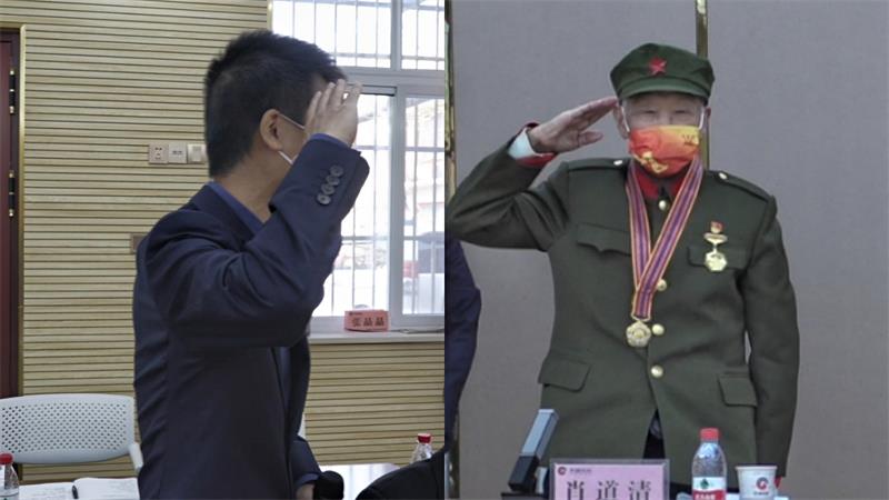 在熱烈的掌聲中,肖道清深情地講起自己在抗美援朝前線作戰(zhàn)的經(jīng)歷。16歲的他積極響應(yīng)國(guó)家號(hào)召,從武漢奔赴東北,到有“人民空軍的搖籃”之稱的東北民主聯(lián)軍航空學(xué)校進(jìn)行學(xué)習(xí),光榮地成為一名空軍塔臺(tái)的指揮員,與戰(zhàn)友跨過(guò)鴨綠江,一起爬冰臥雪、在零下三十多度的戰(zhàn)場(chǎng)上,枕戈待旦、奮勇搏殺。說(shuō)到最后,肖道清激動(dòng)地舉起手,敬了一個(gè)標(biāo)準(zhǔn)的軍禮。
