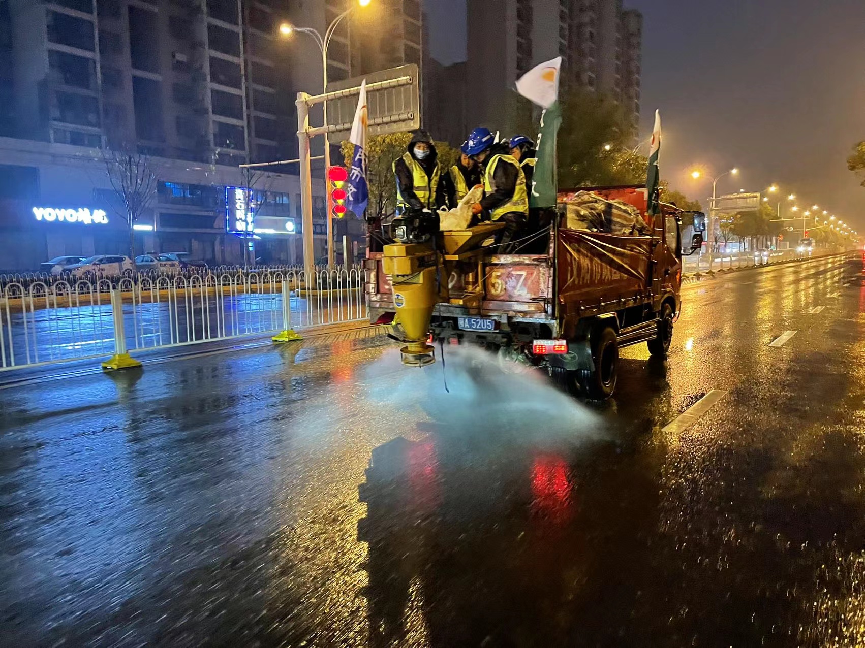 ? ? 瑞雪慶春,銀裝素裹,皚皚白雪雖然美麗,但也給出行帶來了不便。為確保市民出行安全,2月7日凌晨2點,漢陽市政志愿者服務(wù)隊、黨員突擊隊、清雪除冰應(yīng)急隊緊急出動,在漢陽區(qū)墨水湖北路、漢陽大道等主干道進行撒鹽融雪除冰。截止2月7日上午11時,已經(jīng)出動人員220余人,撒鹽車輛40余臺,融雪用鹽近百噸,確保漢陽區(qū)主干道無結(jié)冰。