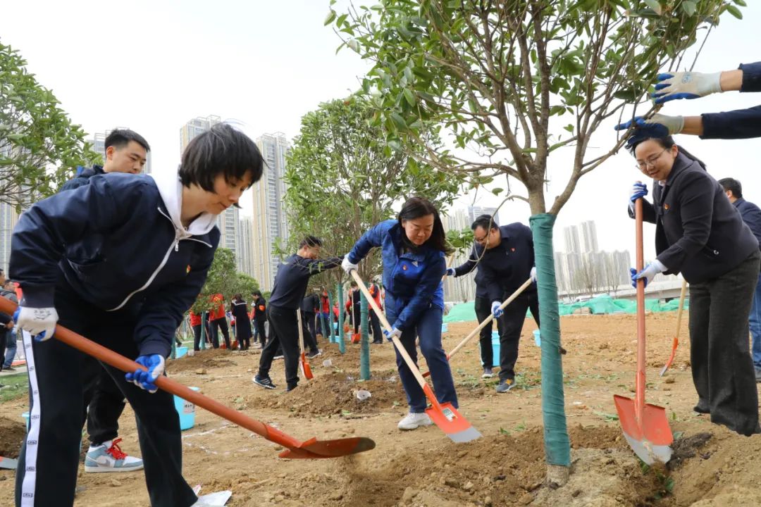 最后,植樹環節,大家紛紛戴上志愿者袖章、馬甲及帽子,進行植樹前的準備工作。“咔咔咔……”,現場植樹鏟土的聲音此起彼伏,大家在這里揮灑汗水,種下一片青翠,系掛祝福書簽,許下更美好的未來。