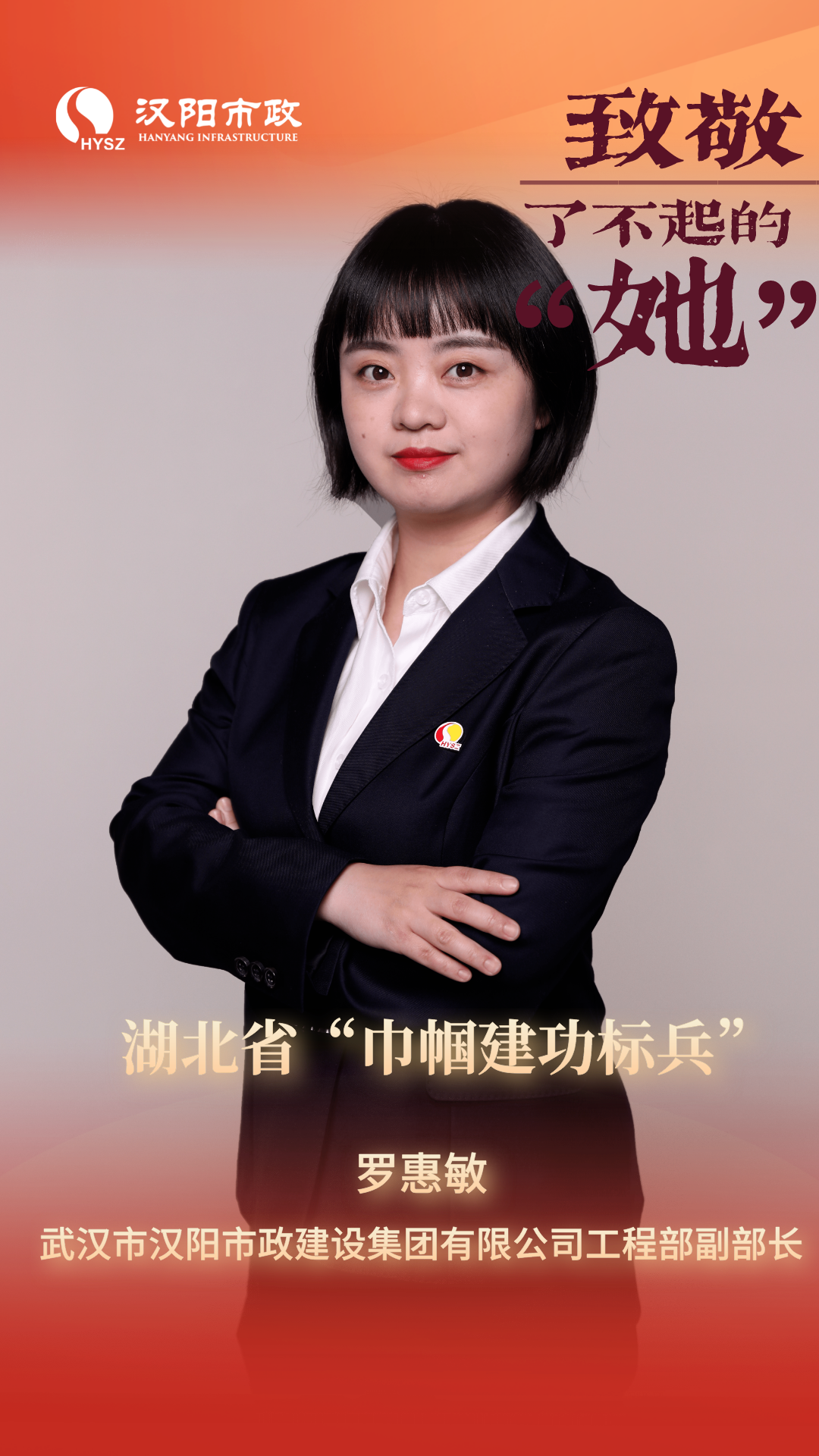 ? ? 羅惠敏,中共黨員, 碩士研究生;2011年7月加入漢陽市政,先后獲得一級建造師(市政專業(yè)、公路專業(yè)、建筑專業(yè)),一級造價工程師。以其聰慧、堅韌和進取,在城市建設(shè)的崗位上,展現(xiàn)著巾幗女性的“她”力量。