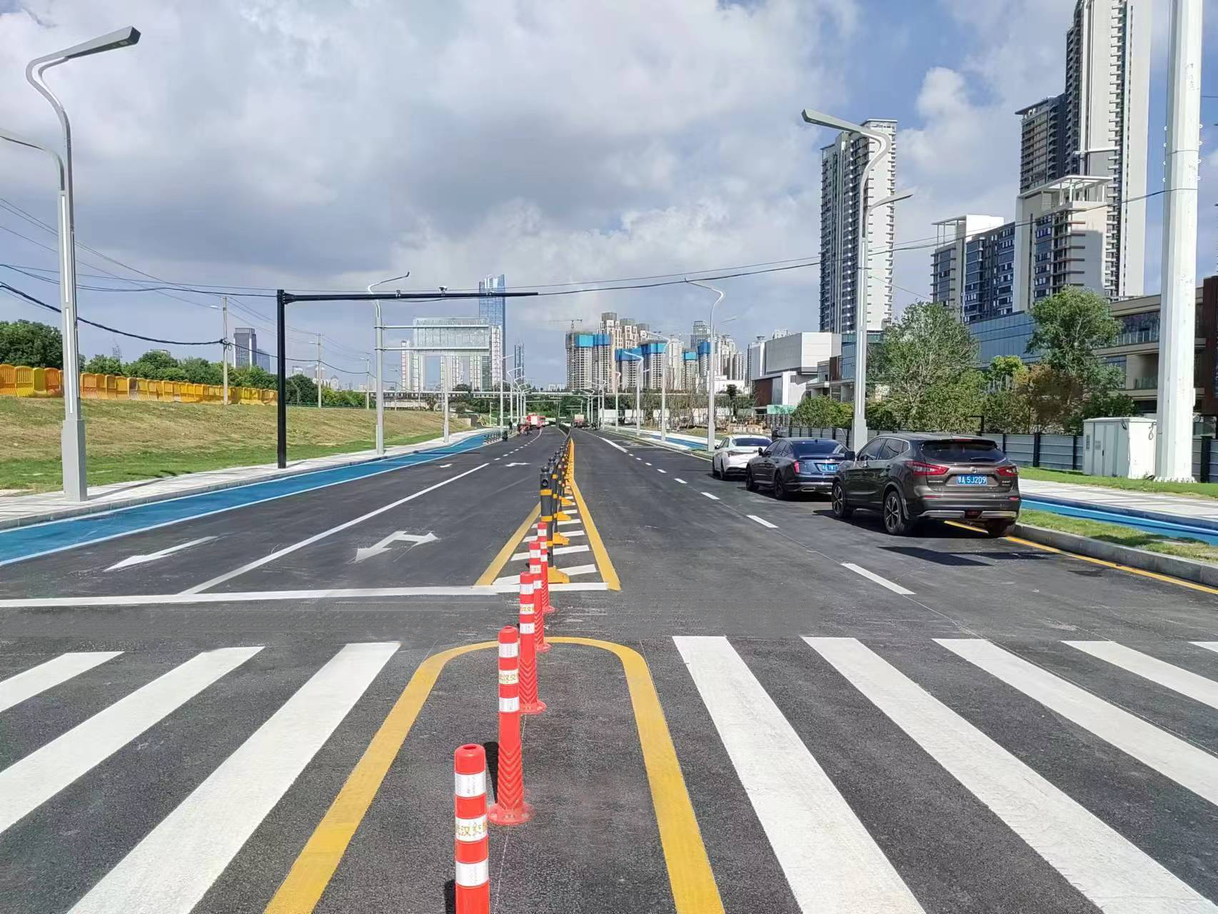 ? ? 知音大道(赫山路-梅家湖東路)工程致力于打造一條極具知音文化的高品質民生之路。道路設計遵循全要素設計原則,設置慢行道、無障礙坡道,滿足出入口零高差平接,充滿人性關懷;人行道鋪裝采用黑白搭配,遠望猶如琴鍵,給人躍動之感;側分帶端頭石刻有高山流水圖案,與知音文化呼應;5G智慧路燈多桿合一,進一步完善城市功能,推動萬物互聯發展。