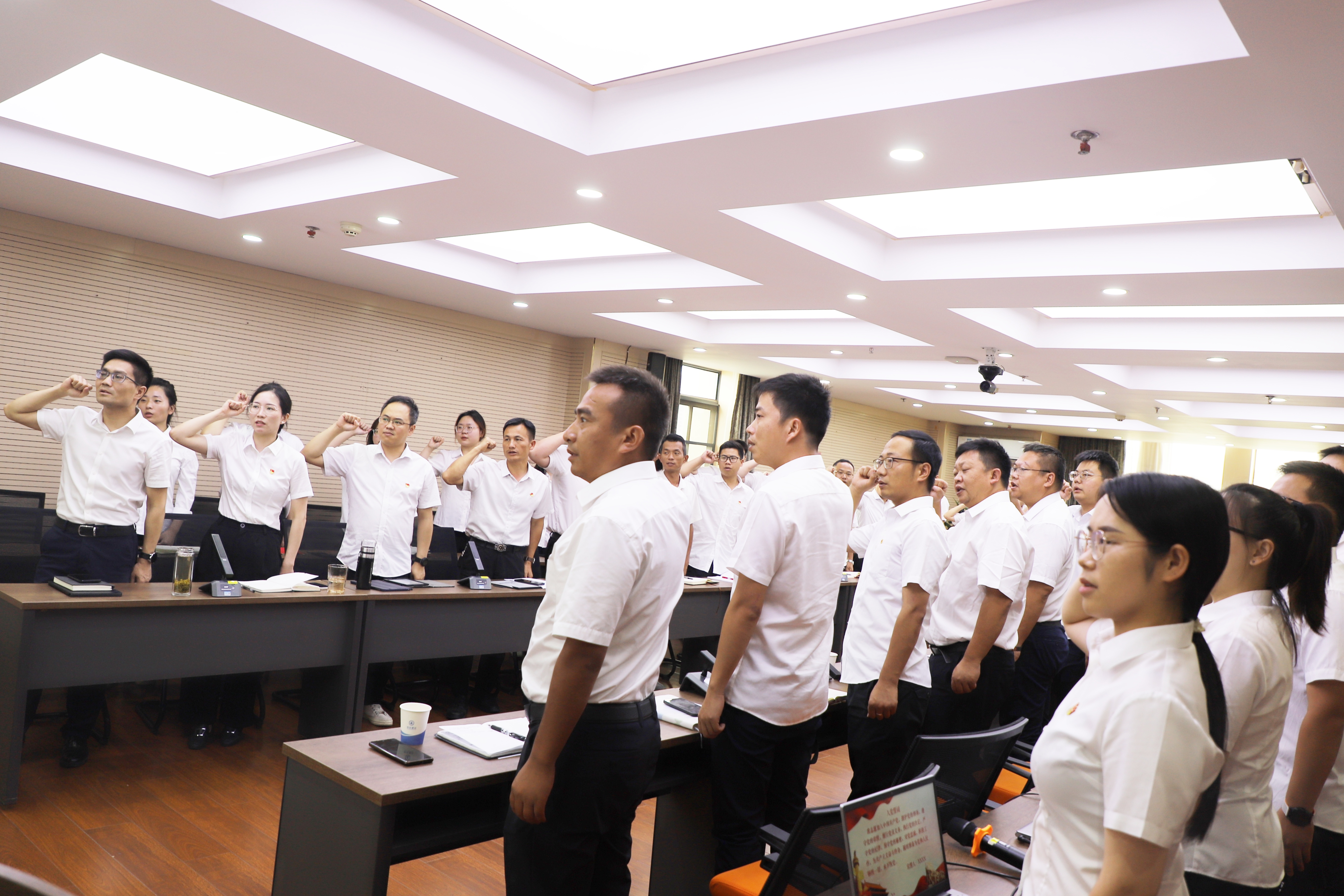 會議在莊嚴的國歌聲中開始,隨后全體黨員高高舉旗右拳,重溫入黨誓詞,在擲地有聲的宣誓聲中回望初心。黨員張禮亮領學《黨章》部分內容,組織知識競答。