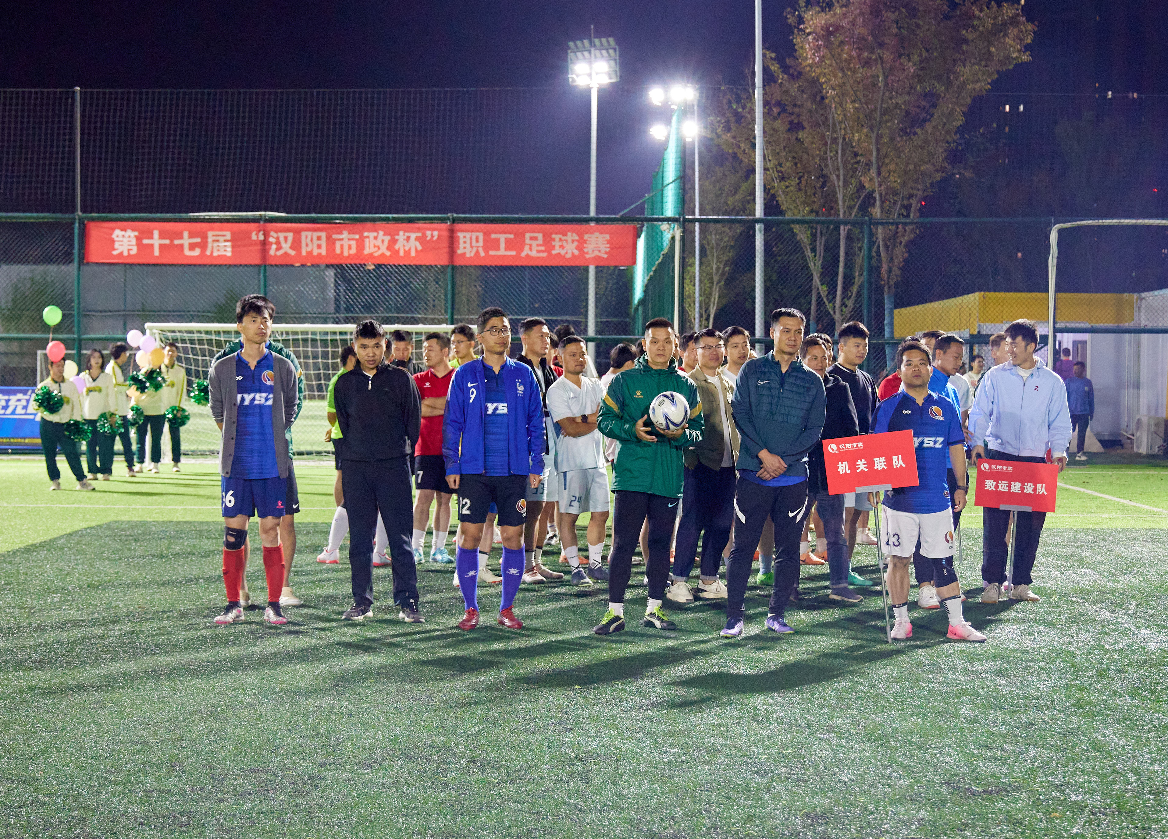 在開幕式上,漢陽市政致遠建設、天創建設以及承遠設計的青年啦啦隊員們為現場觀眾帶來了精彩的舞蹈表演,不僅展現了青年員工們的多才多藝和青春活力,更為足球賽增添了一抹亮麗的色彩,瞬間點燃了全場的熱情與期待。